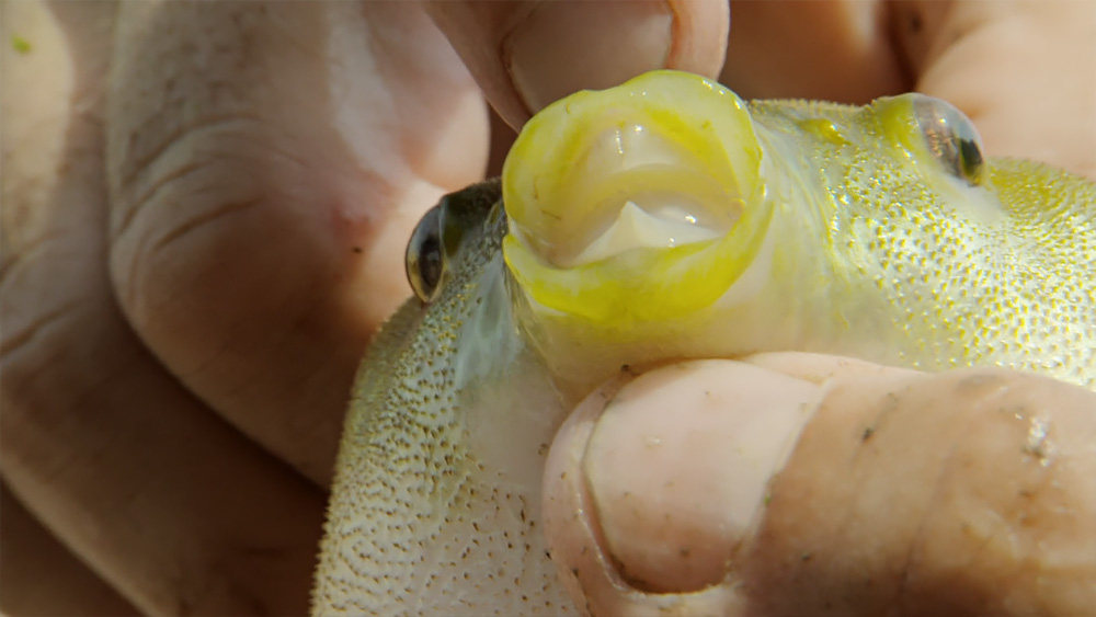 The freshwater fish in question is a beautiful-colored pufferfish (Pao cochinchinensis) that inhabits the local waterways along the Mekong and on the enormous Tonle Sap Lake, the largest freshwater lake in Southeast Asia. Having caught and handled this exact species myself outside Siem Reap, which can easily be found at the right time of year just by using a small net, I can attest to this little fish’s reputation and charm, at equal levels.
